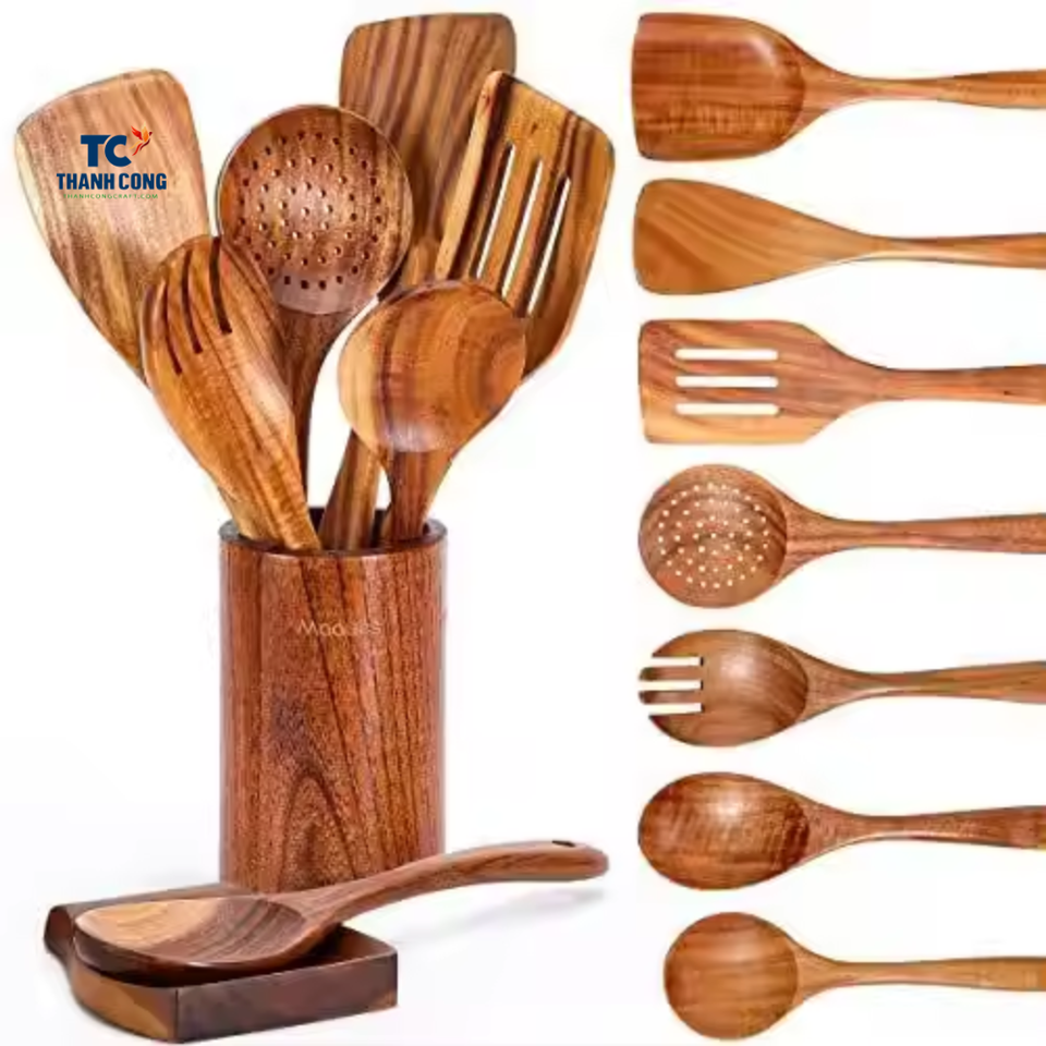 Wholesale 100% Coconut Wood Handcrafted Utensil Set Eco-friendly Tableware Collection Storage Baskets