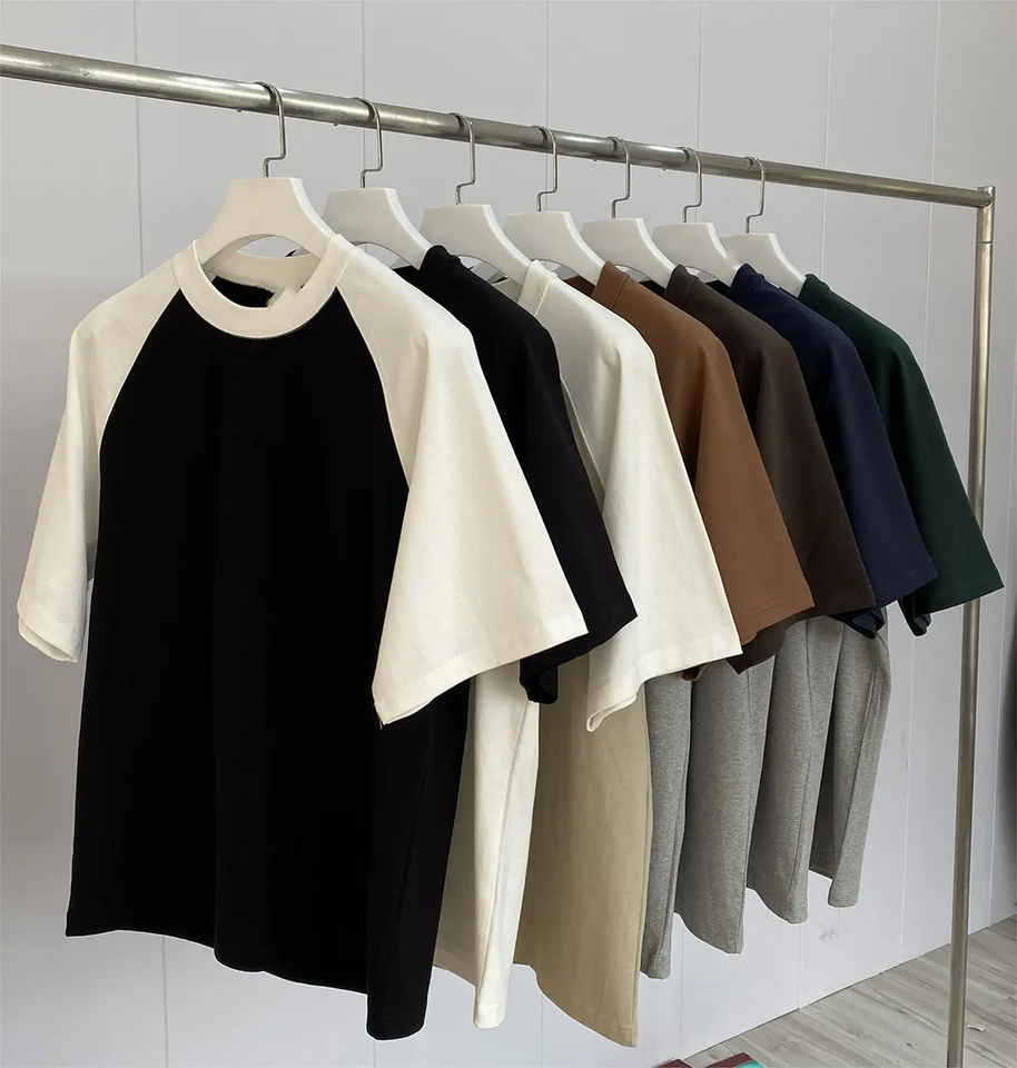 Wholesale 100% Cotton 260GSM Heavyweight Plain Blank Raglan Sleeve Oversized Custom Logo Streetwear T Shirt Men