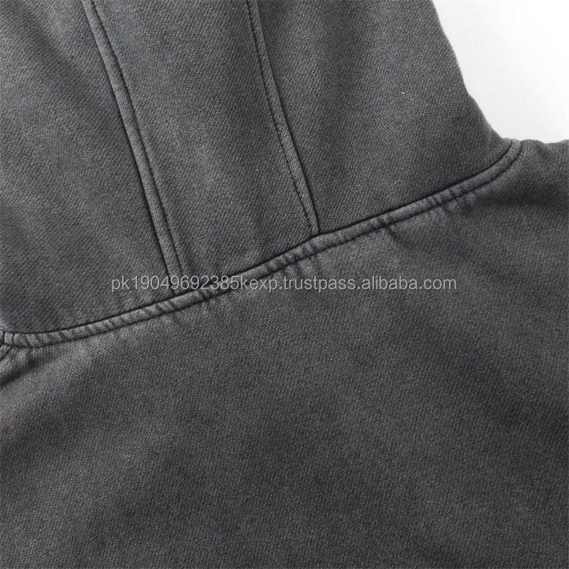 Wholesale 100% Cotton Acid Wash Hoodie Drop Shoulder Custom Printing Full Face Half Zip Heavyweight Ninja Balaclava Hoodies Men