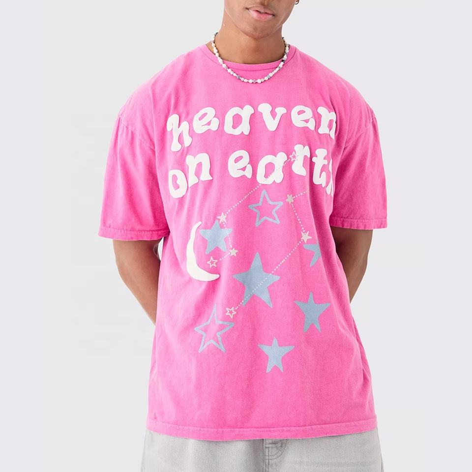 Wholesale 100 Cotton Acid Wash Printed Oversized Tshirt 250Gsm Heavyweight T Shirt for Men Custom Blank Vintage T Shirt