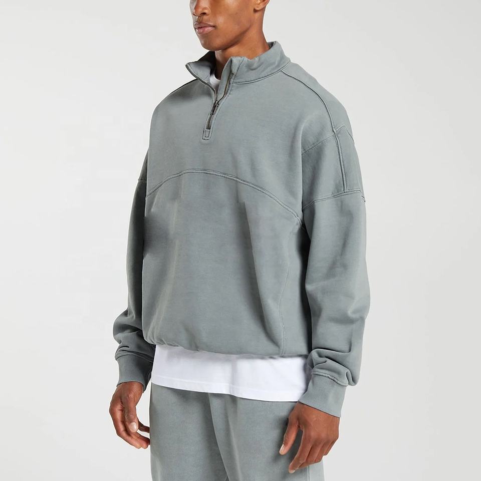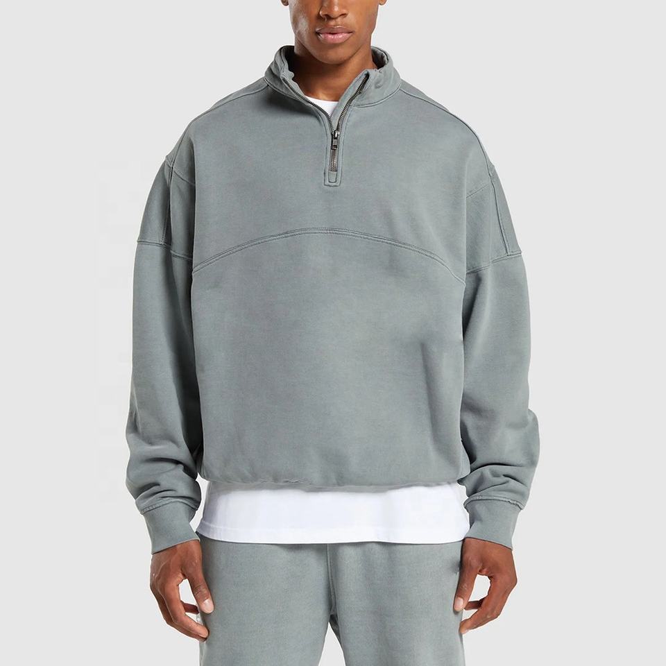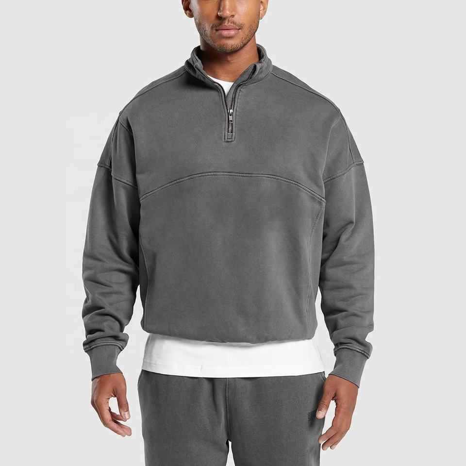 Wholesale 100% Cotton Acid Wash Sweatshirts Custom Hoodie Unisex Half Zip Sweatshirt Cotton Heavy Weight Fleece Hoodies
