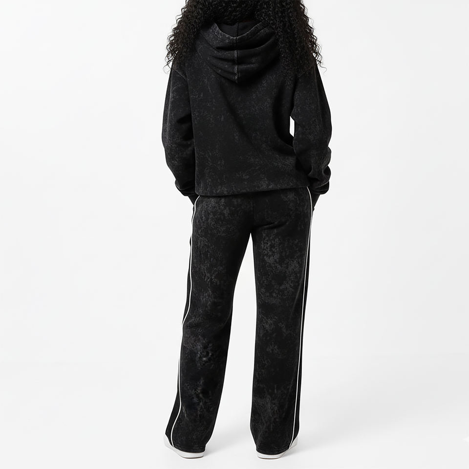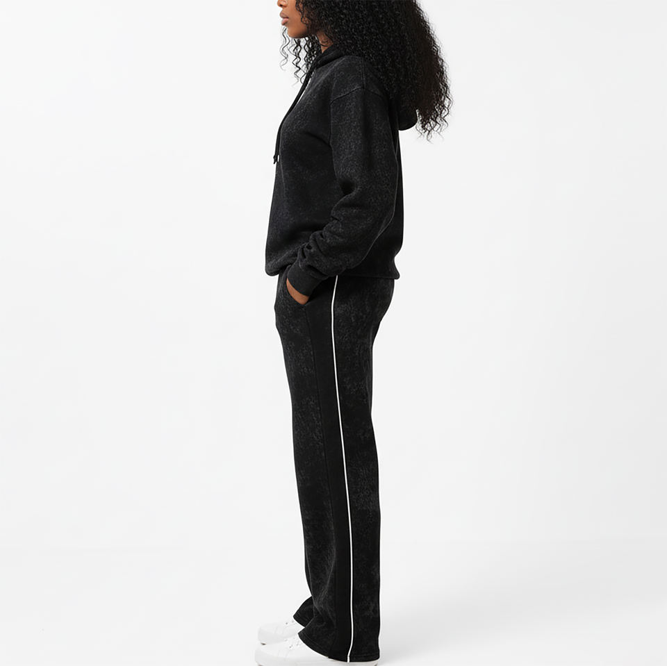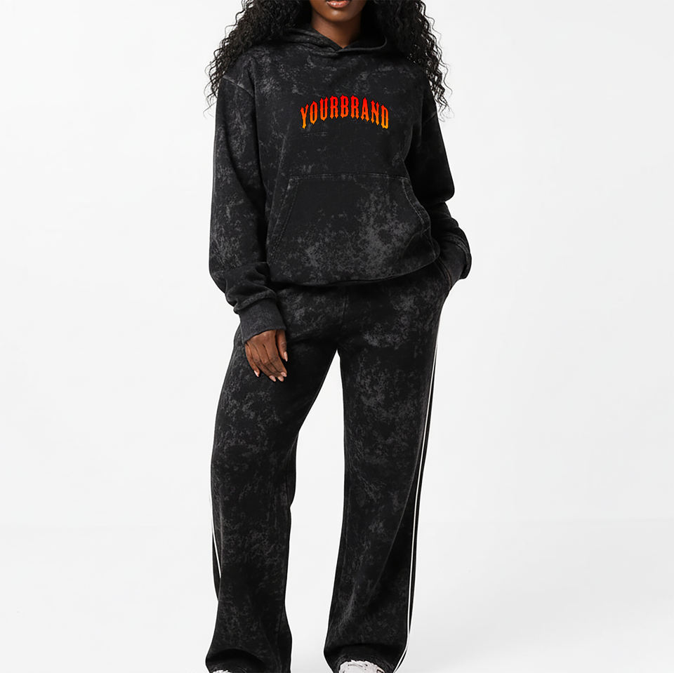 Wholesale 100% Cotton Acid Washed Winter Solid Pullover Tracksuit Streetwear Heavyweight Warm 2 Piece Jogger Set for Women