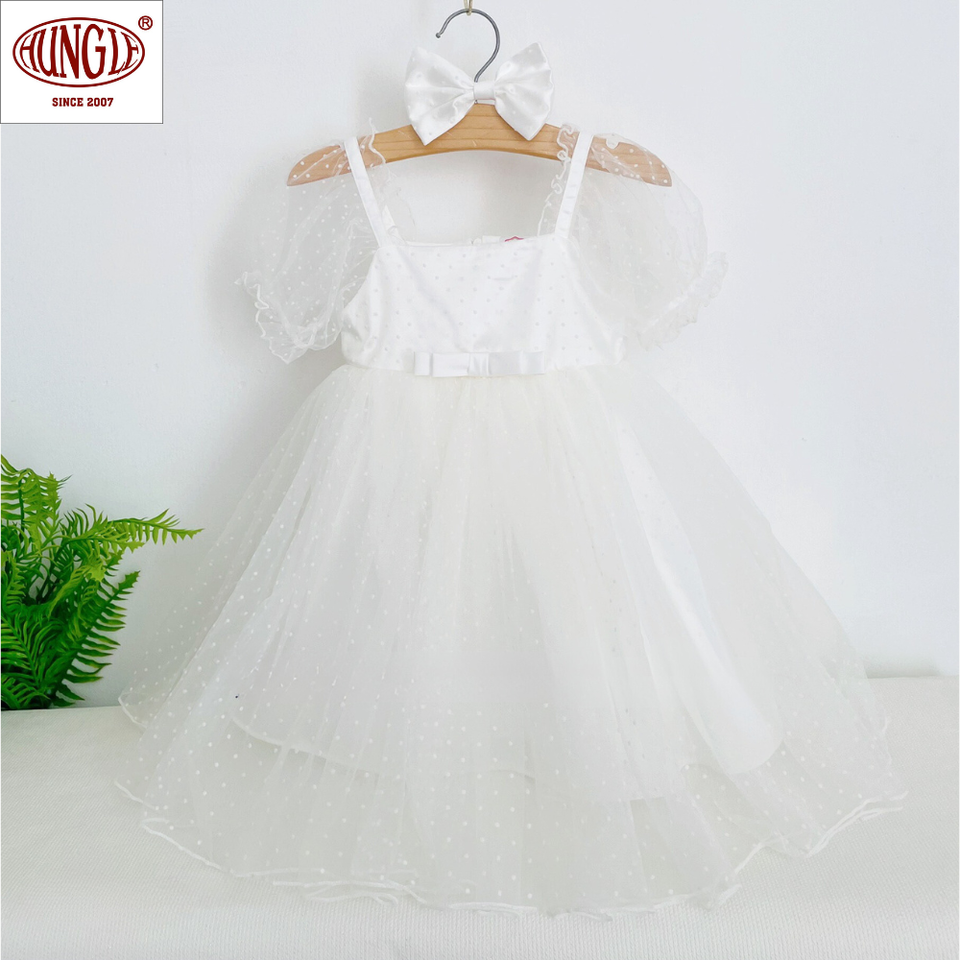 Wholesale 100% Cotton Adorable Baby Christmas Eve Dress O-Neck Collar Knee-Length Silhouette Dot Layered Dress