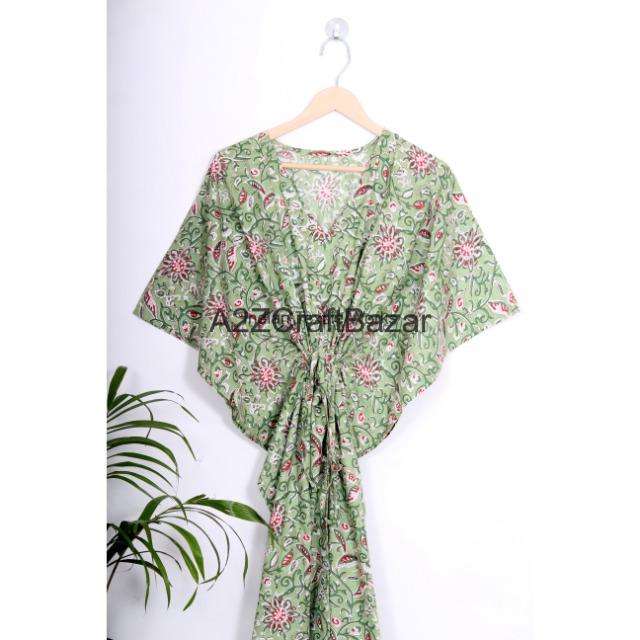 Wholesale 100% Cotton Eco-Friendly Washable Daily Casual Long Kaftan Floral Pattern Breathable Bodycon Midi Dress Natural