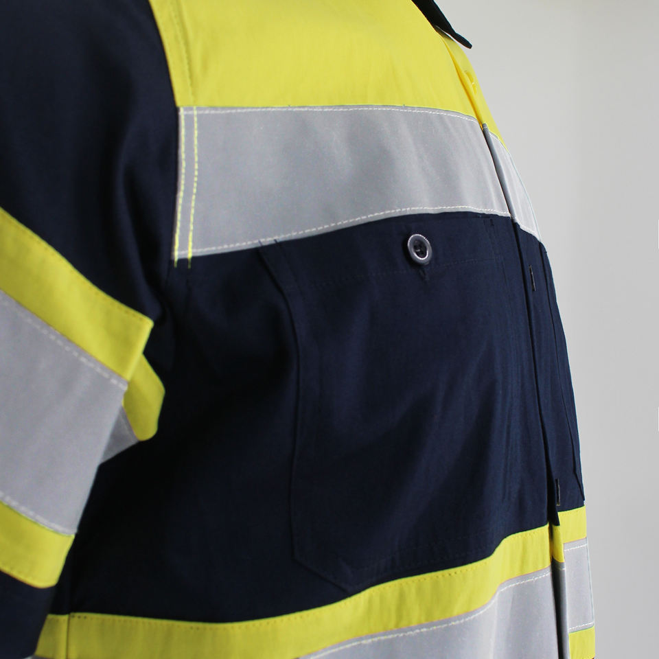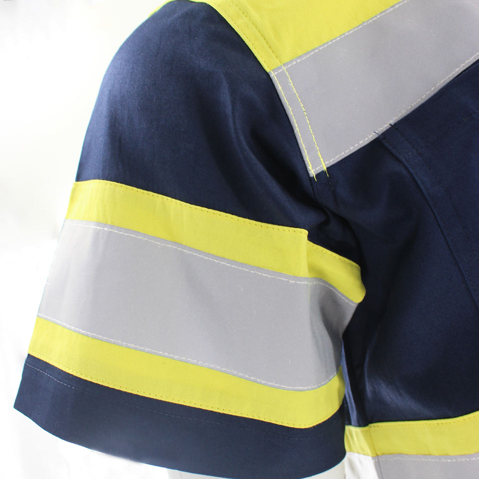 Wholesale 100% Cotton Fabric Construction Road Safety Man Working Two Tone Reflective Safety Polo Shirt