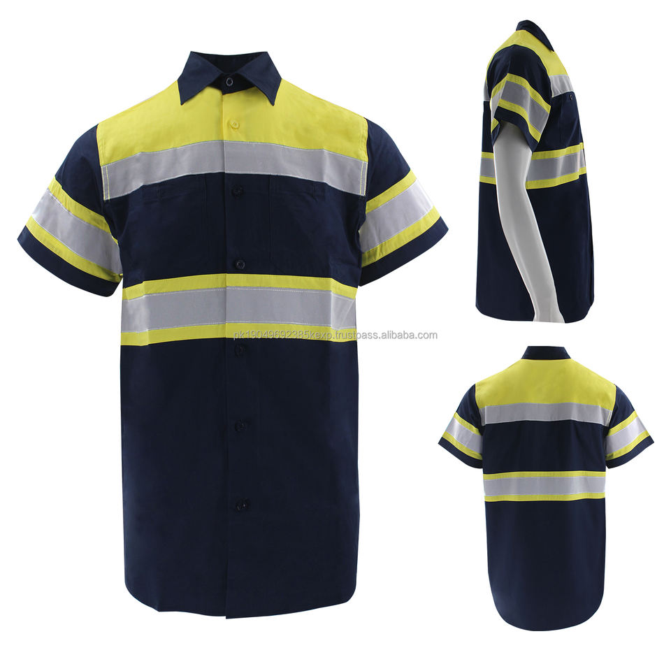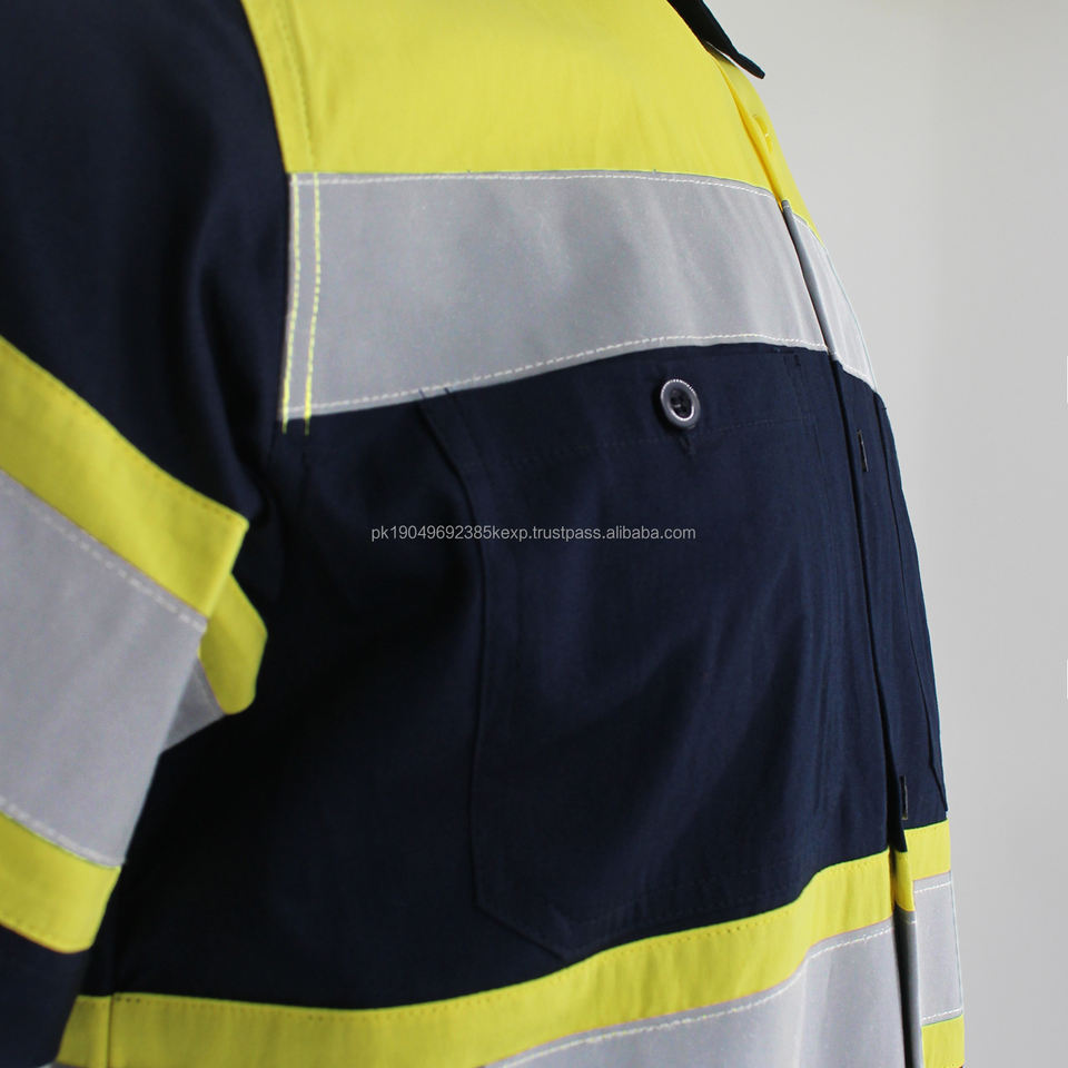 Wholesale 100% Cotton Fabric Construction Road Safety Man Working Two Tone Reflective Safety Polo Shirt
