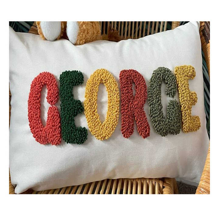 Wholesale 100% Cotton Hand Tufted Punch Needle Cushion Cover George Wording Design Trendy Living Room Chair Pillow Case Soft