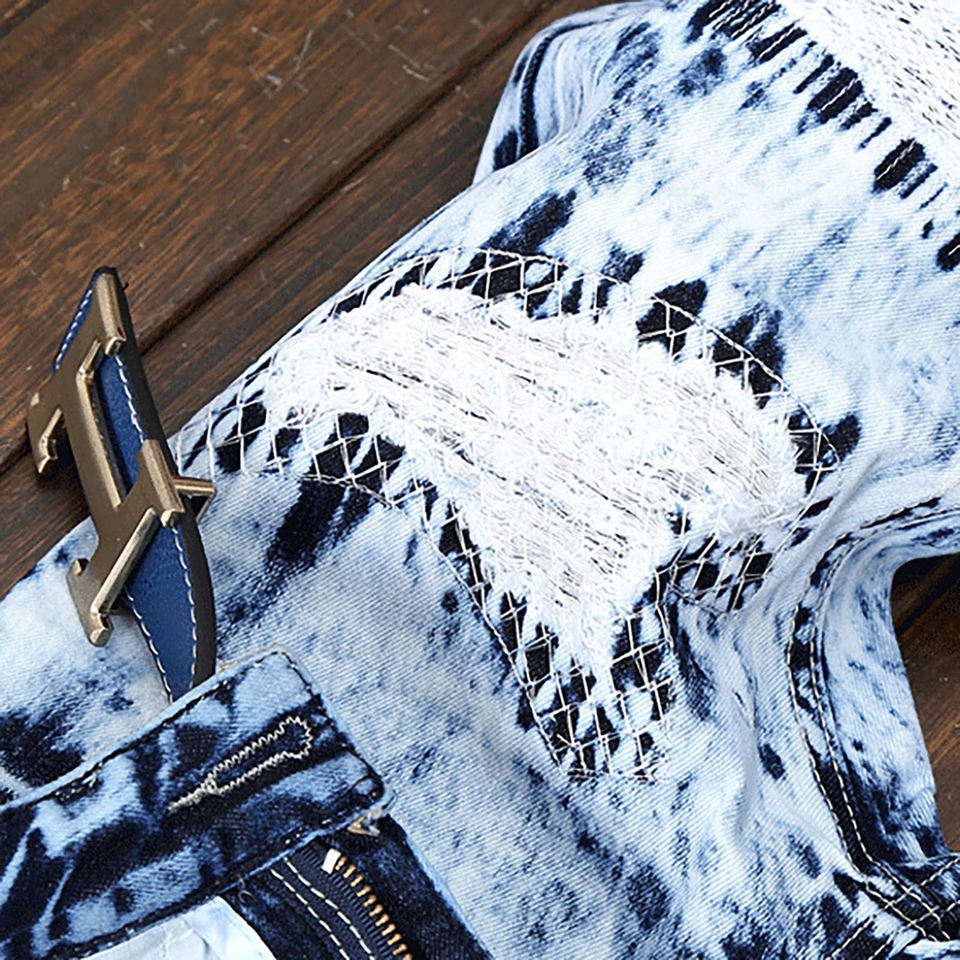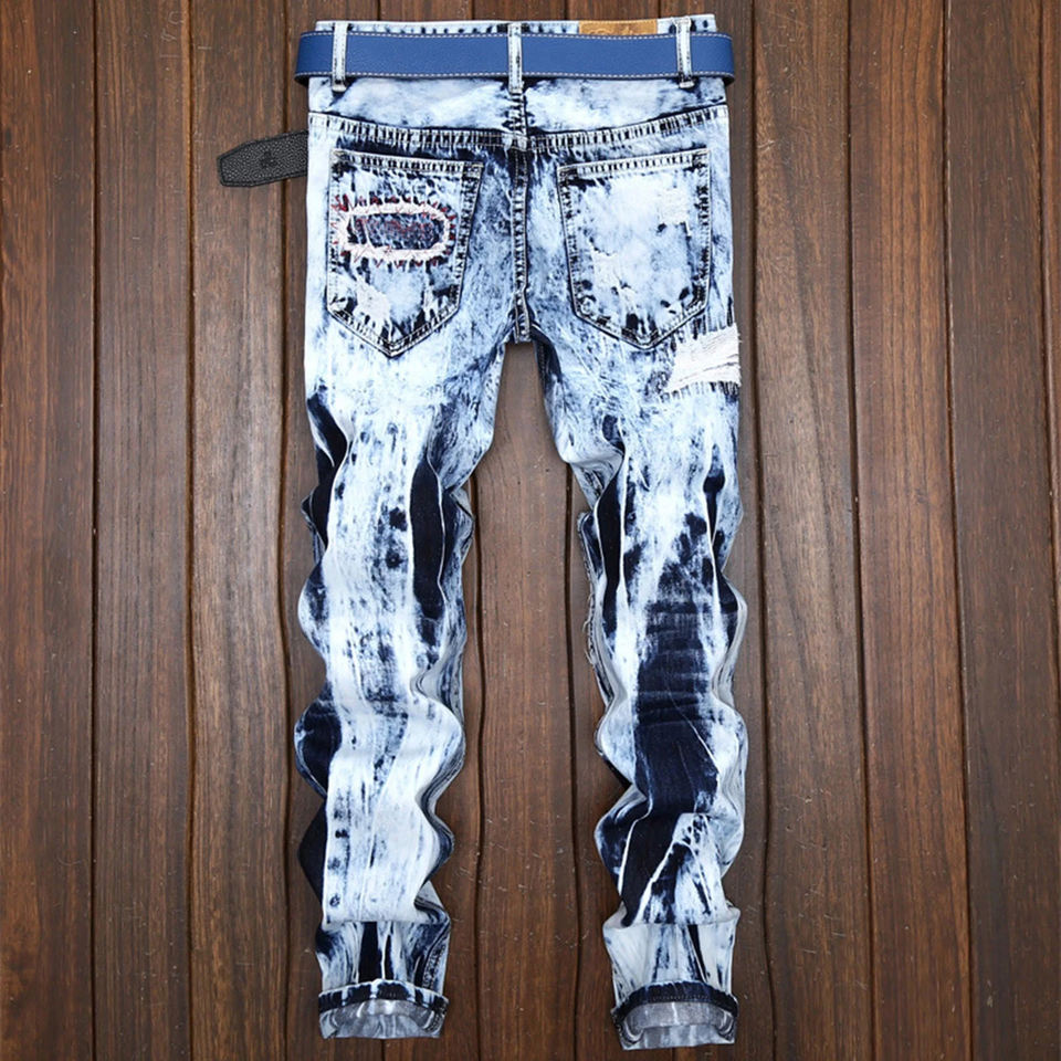 Wholesale 100% Cotton High Quality Denim Jeans Print Streetwear Distressed Ripped Slim Fit Moustache Effect Men's Pants Jeans