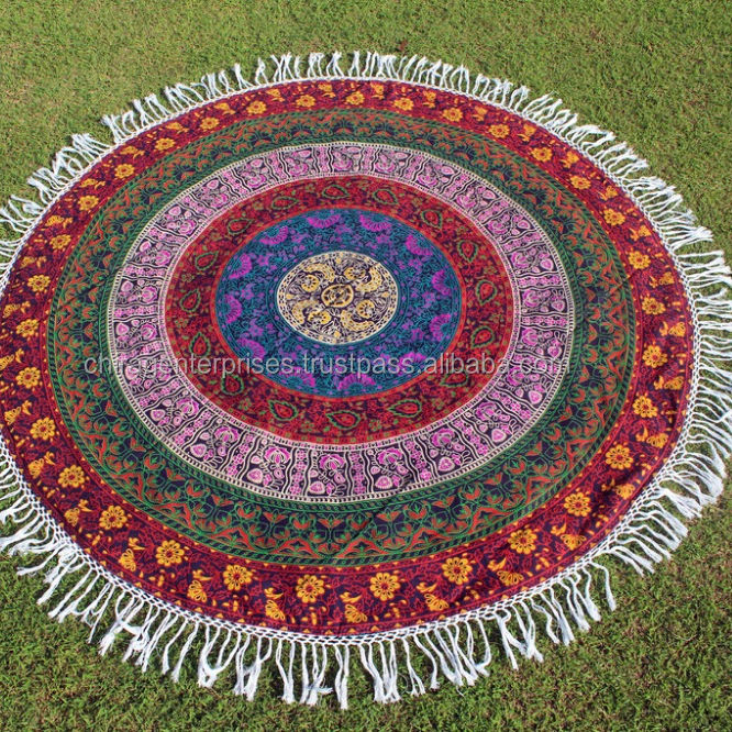 Wholesale 100% Cotton Indian Ombre Mandala Roundie Towel Set Floral Quick-Dry Beach Customized Design High Woven Bath Towel Sets
