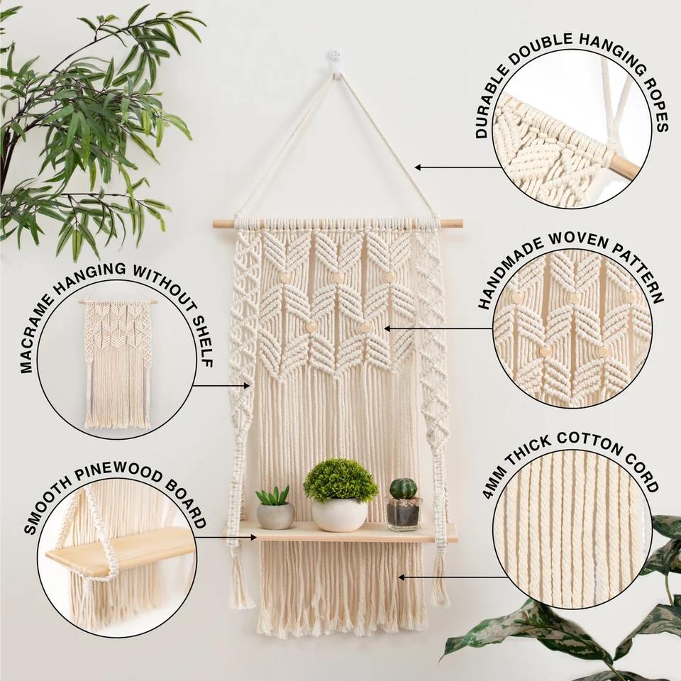 Wholesale 100% Cotton Macrame Wall Hanging Shelf Premium Quality with Unique Still Life Pattern for Home Decor