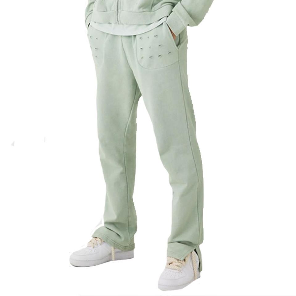 Wholesale 100% Cotton Men's Light Weight Distressed Zipper Tracksuit Winter Custom Logo Washed Hooded Zip Sweatpants