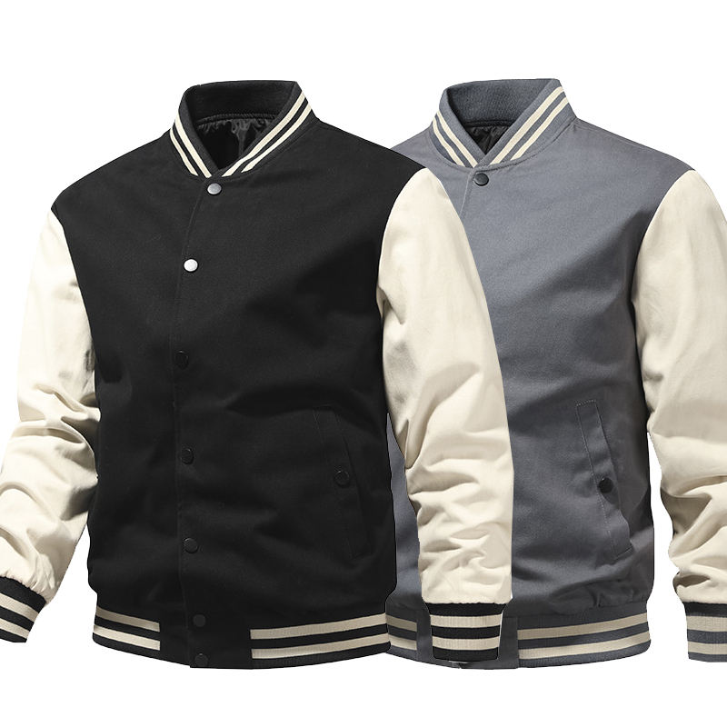 Wholesale 100% Cotton Mens Varsity Jacket Patchwork Stand Collar Baseball Coat Street Wear CollegeBaseballjacket for men