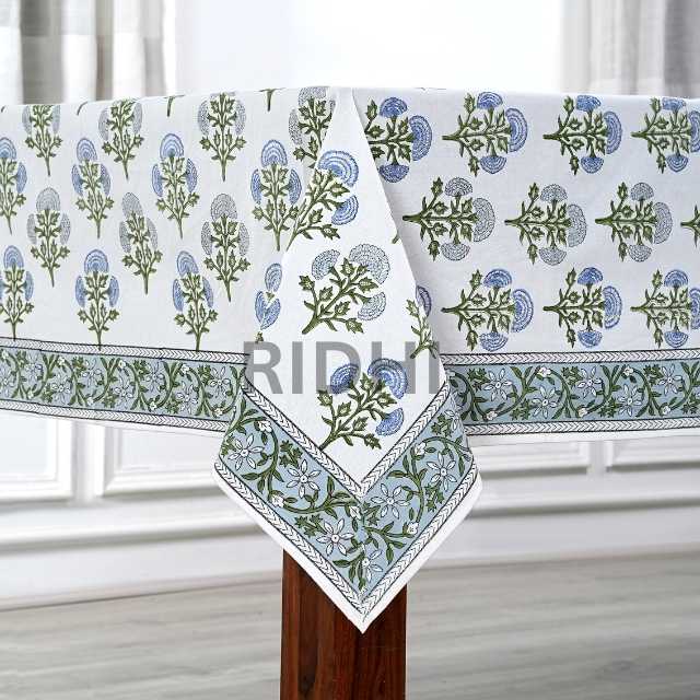 Product Name:Mughal Buta Blue Floral Border Design Tablecloth