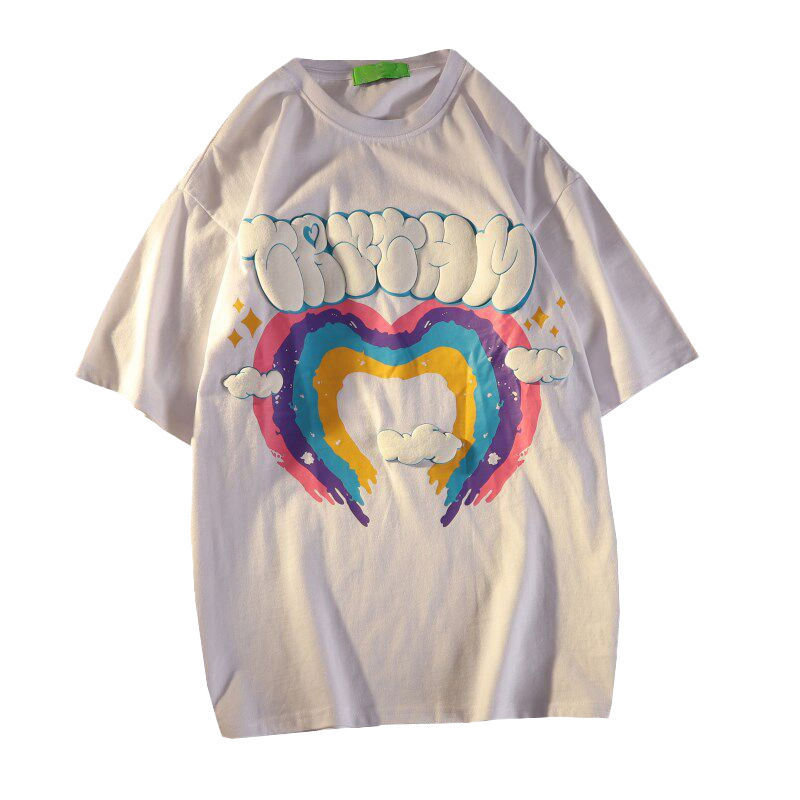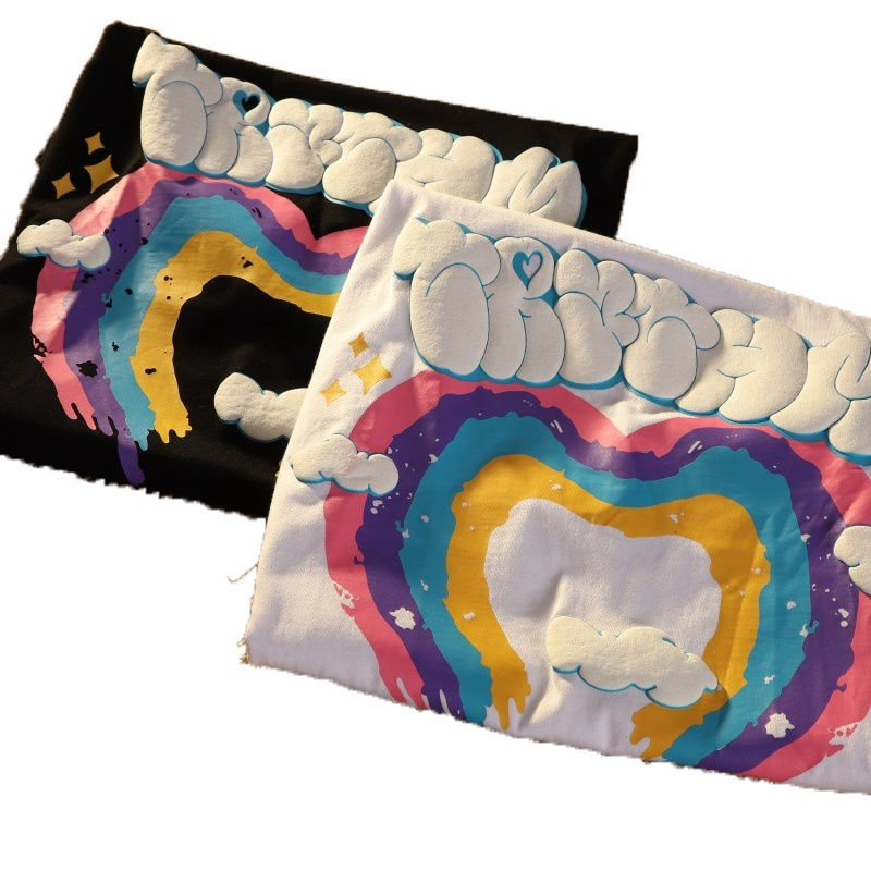 Wholesale 100% Cotton O neck Plain Oversized Tshirt Custom Rainbow 3d Puff Screen Printed logo Loose fit T-Shirt for Men