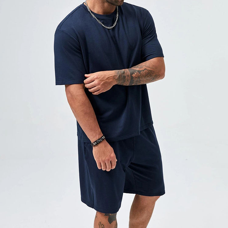 Wholesale 100% Cotton Plain Shirt and Shorts Set 2 Piece Set Men's Jogging Wear Men Summer Sets