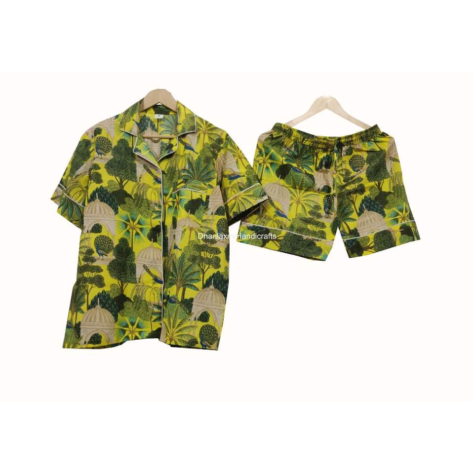 Wholesale 100% Cotton Short Pyjama Set Hand Screen Printed Floral Pattern Indian Night Wear Beautiful Lounge Short Shirt