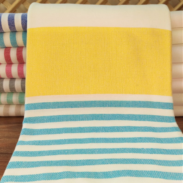 Wholesale 100% Cotton Striped Turkish Fouta Towel with Tassels Multi-Use Hand Kitchen Golf Beach Towel in Assorted Colors OEM