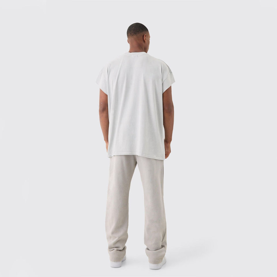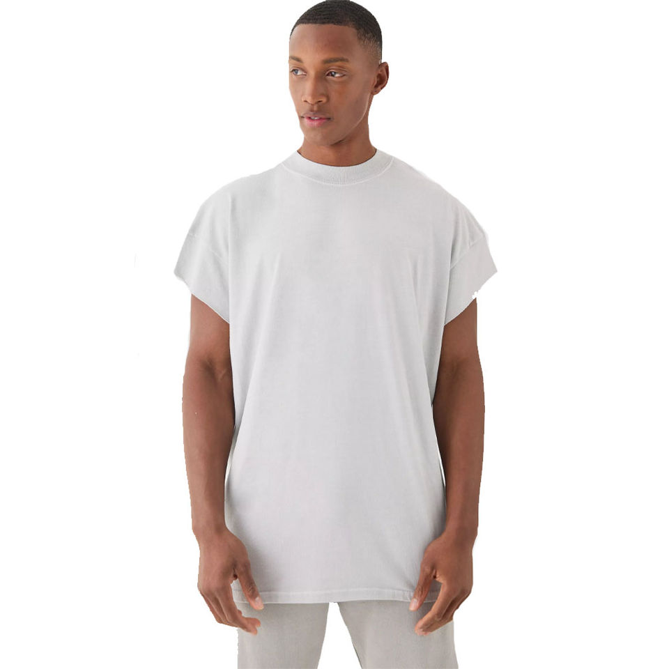 Wholesale 100% Cotton Vintage Cropped Sleeve Oversized T Shirts for Men Custom Blank Raw Hem Cropped Length Unisex T Shirts
