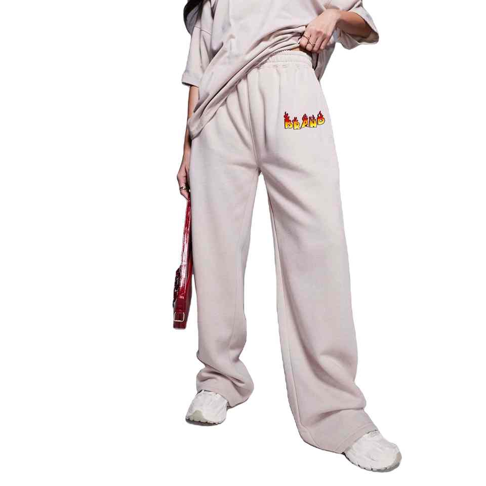 Wholesale 100% Cotton Winter Casual Wear Oversized Sweatpants for Woman Custom Screen Printed Logo Breathable Ladies Trouser