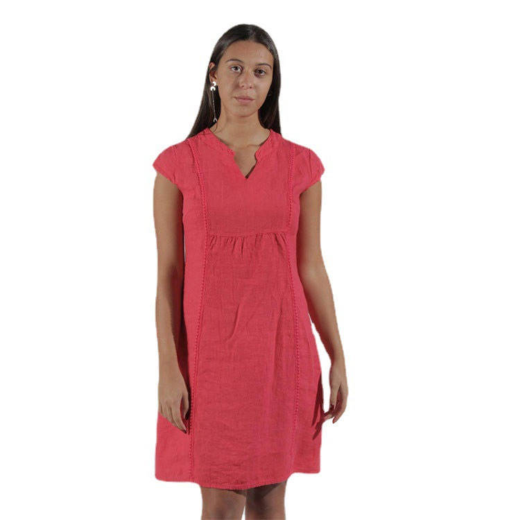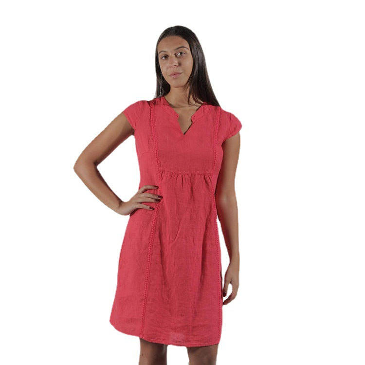 Product Name:Casual Wear Outfits Short Sleeve Women Linen Dress Red One-piece Dress
