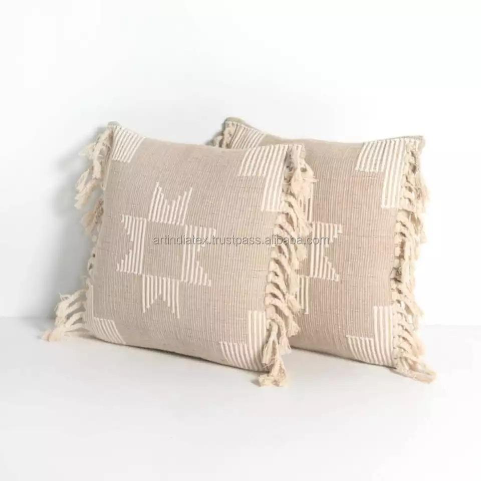 Wholesale 100% Luxury Cotton Embroidered Cushion Covers Zipper Closure Outdoor Decorative Pillowcase for Home