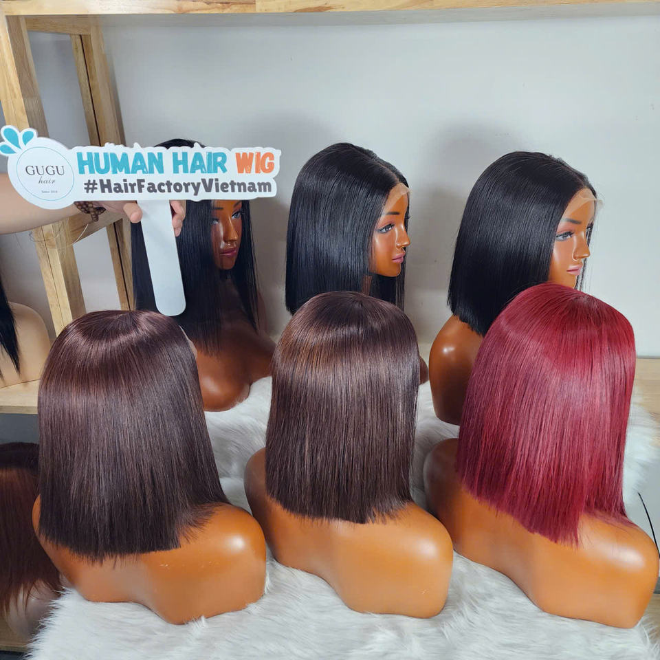 Wholesale 100% Raw Vietnamese Color Bone Straight 12 inches Bob Wig Human Hair Wigs Double Drawn Vendor