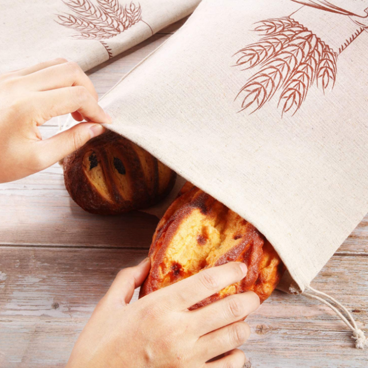 Wholesale 100% Small Large Fair Trade Linen Organic Custom Print Muslin Cotton Canvas Drawstring White High Quality Bread Bag