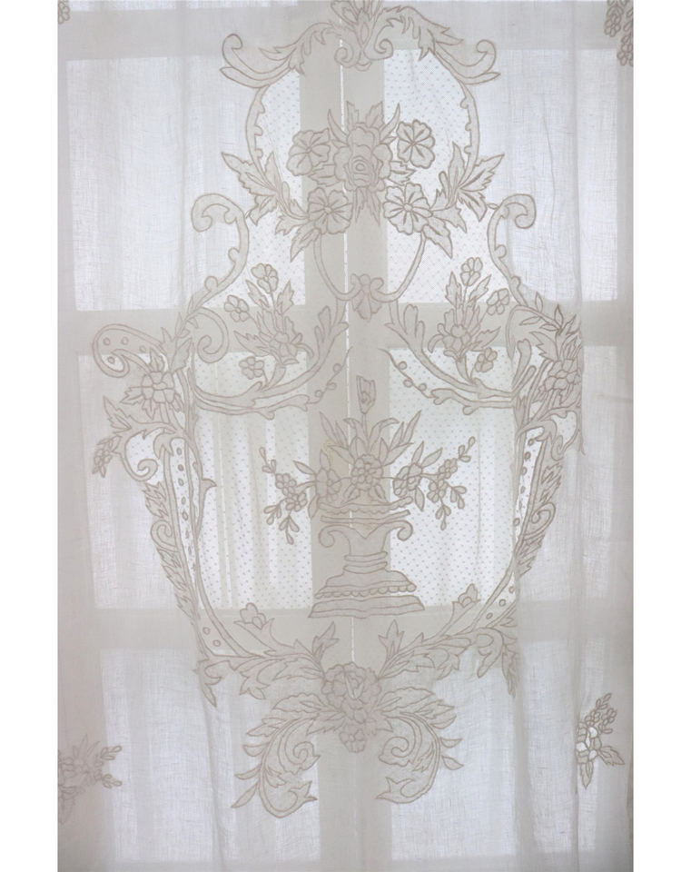 Wholesale 100% White Linen Embroidered Flower Curtains Custom Korean Vintage Style for Home Hotel Spa Cafe