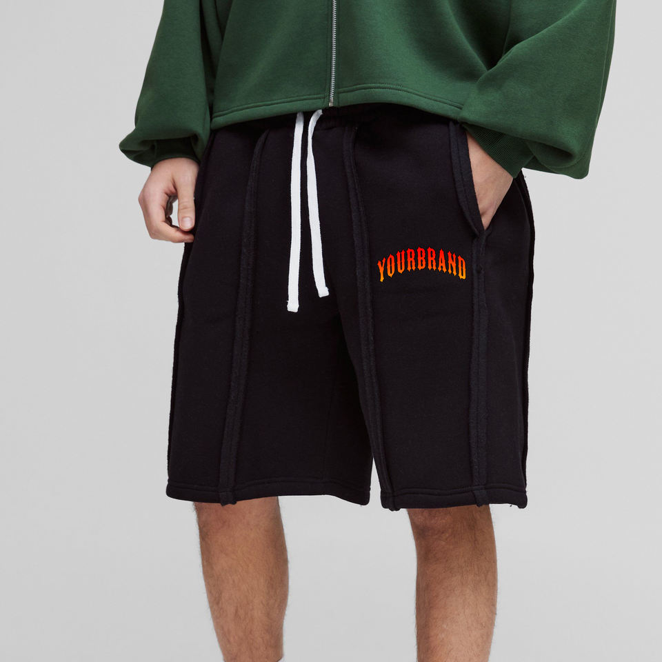 Wholesale 100% cotton mens jogging short Custom 3D puff printed logo Heavy Weight solid colour with side pockets mens jogger