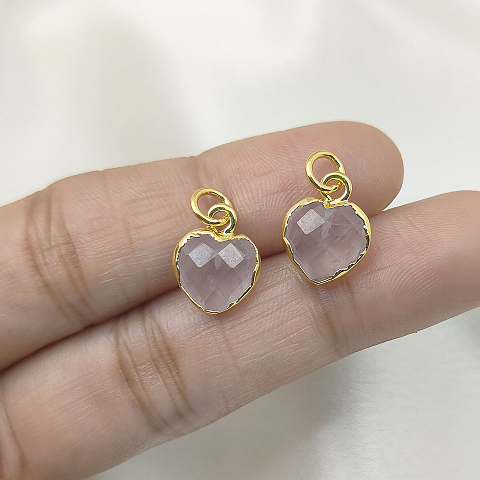Wholesale 10mm Rose Quartz Heart Shaped Pendant Gold Plated Sterling Silver Jewelry for DIY Jewelry Making and Gift Giving