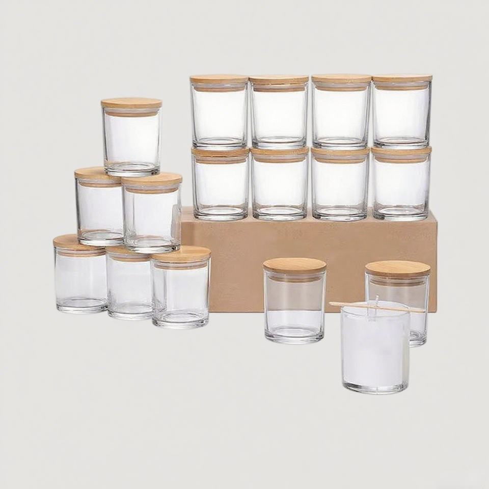 Wholesale 10oz 12oz Customized Candle Vessels Luxury Empty Glass Candle Jars for Candle Making With Wooden Lid