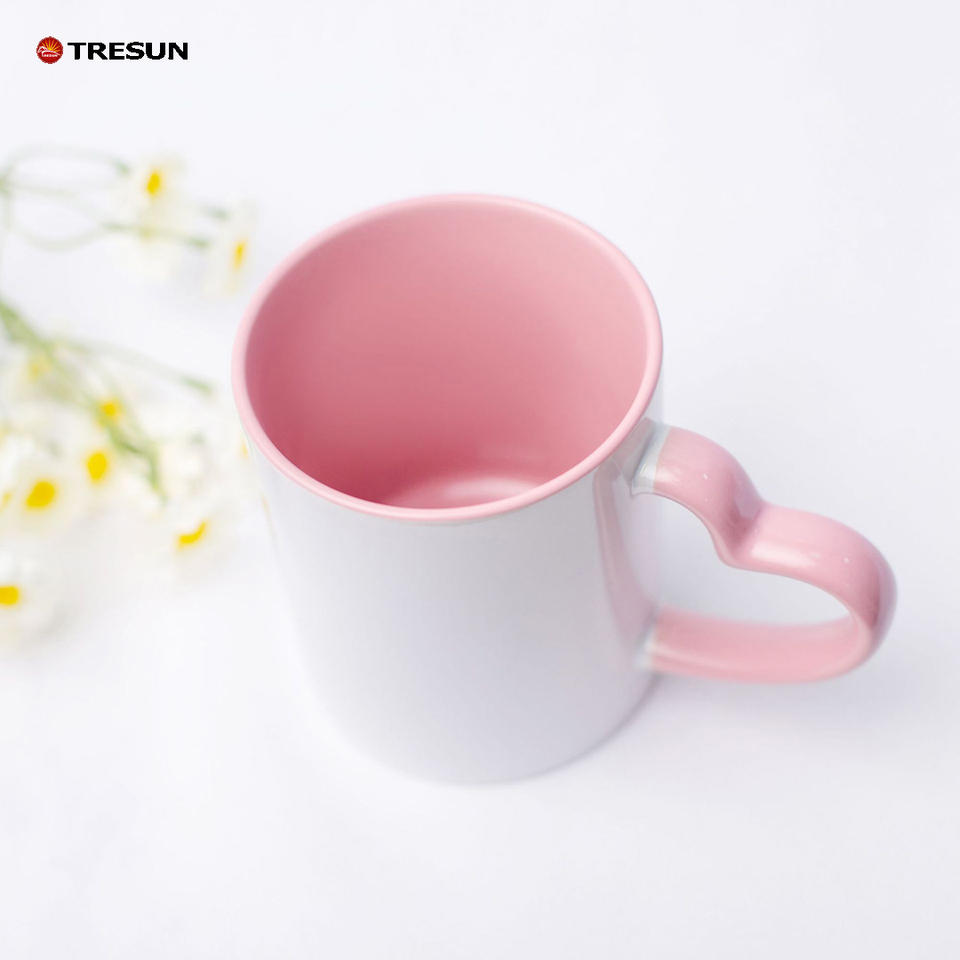 Wholesale 11oz Heart-Shaped Ceramic Mugs with Sublimation Handle Inner Color Blank Custom Logo for Wedding-Eco-Friendly Reusable