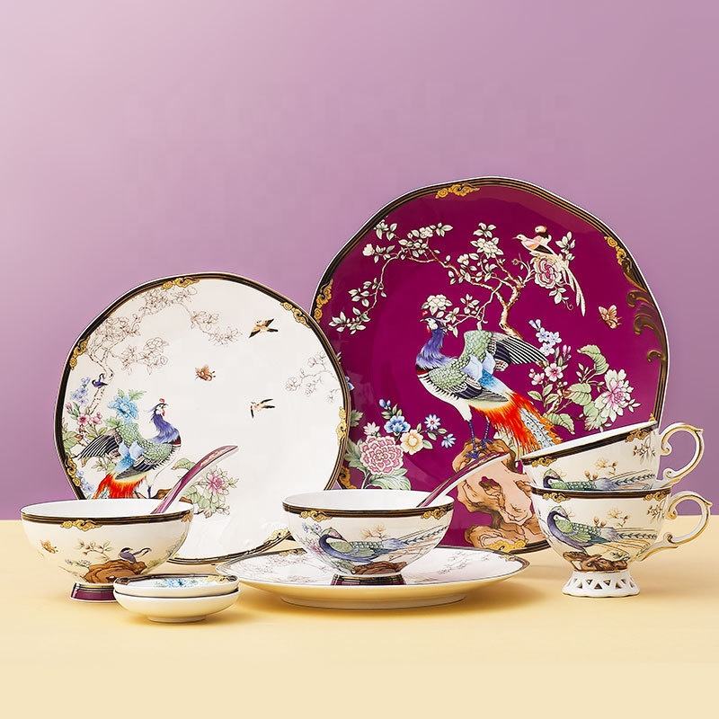 Wholesale 11pcs Chinese Classical Lucky Bird Home Decors Luxury Living Room Fine Porcelain Dinnerware Sets