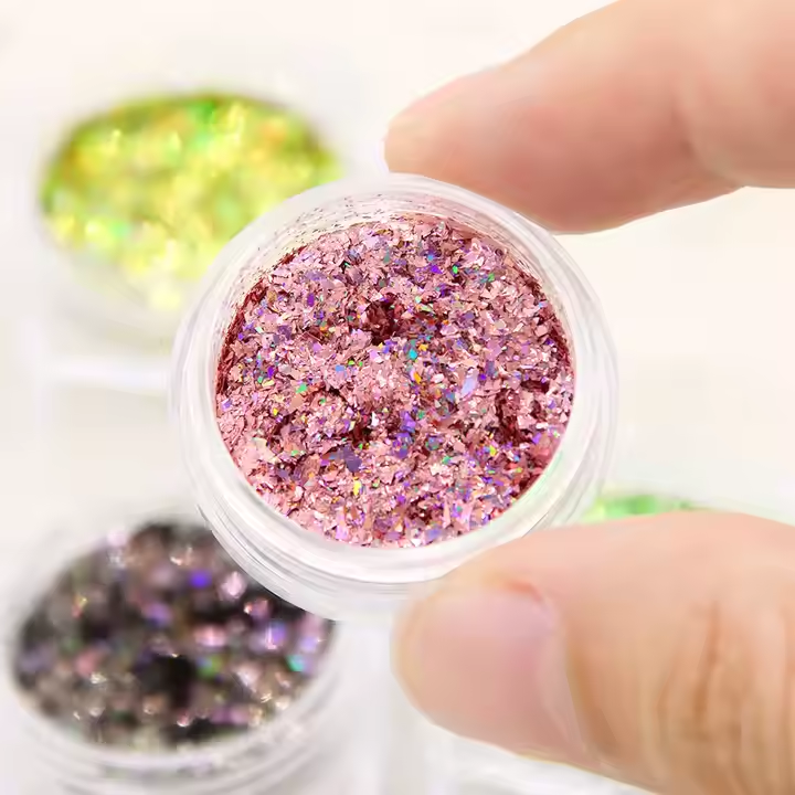 Wholesale 12 Color Holographic Glitter Powder Super Shiny Bottle Set Inorganic Pigment Leather Pigments Custom Size Epoxy Resin