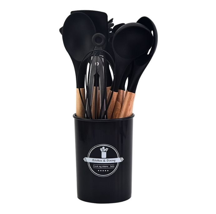 Wholesale 12-Piece Heat Resistant Non-Stick Silicone Spatulas Set with Wood Grip Dishwasher Safe Cooking Utensils