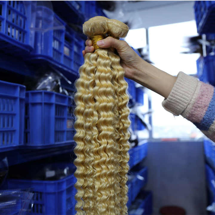 Wholesale 12A Deep Wave #613 Human Hair Bundles Raw Indian Cheap 613 Bundles Remy 100% Human Hair Extensions Bundles