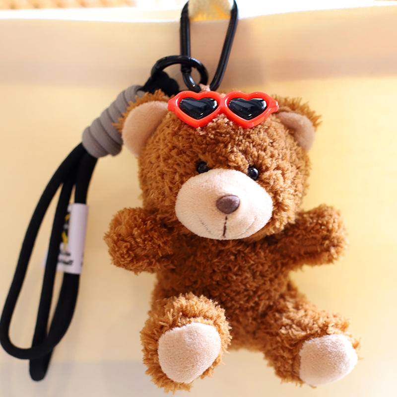 Wholesale 12cm Cute Stuffed Bear Keychain Creative Plush Bag Pendant Gift for Kids Cotton Fabric PP Cotton Filling
