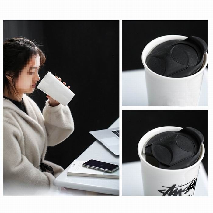Wholesale 12oz Insulated Double Wall Ceramic Coffee Mug Hand Grip Plastic Lid Classic Style Customized Logo for Business Gifts