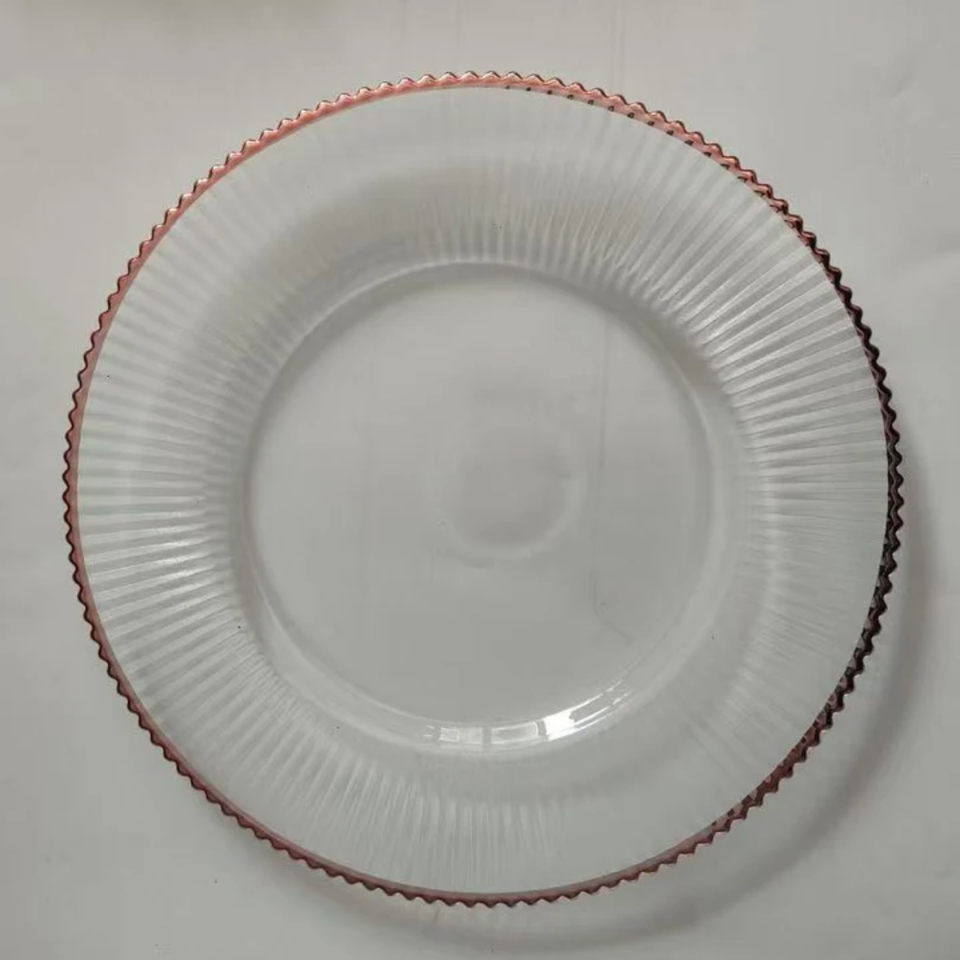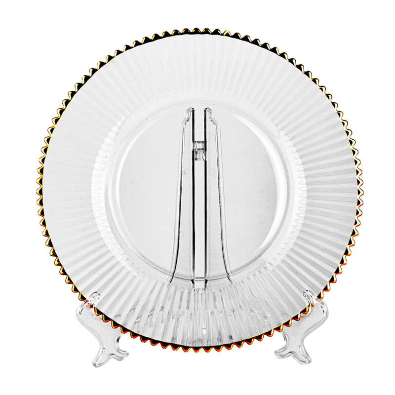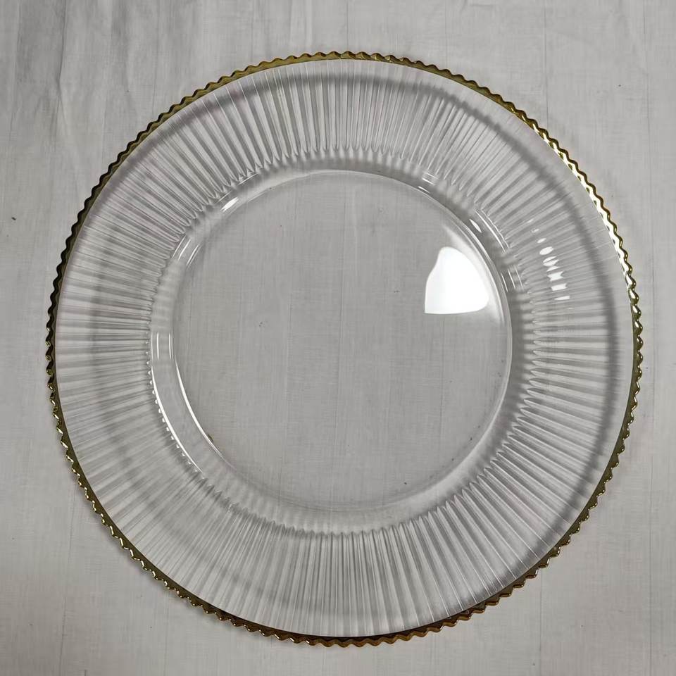 Wholesale 13 Inch Gold Rimmed Wedding Glass Charger Plates Plate Dish Dinnerware Set For Wedding & Housewarming Food Usage