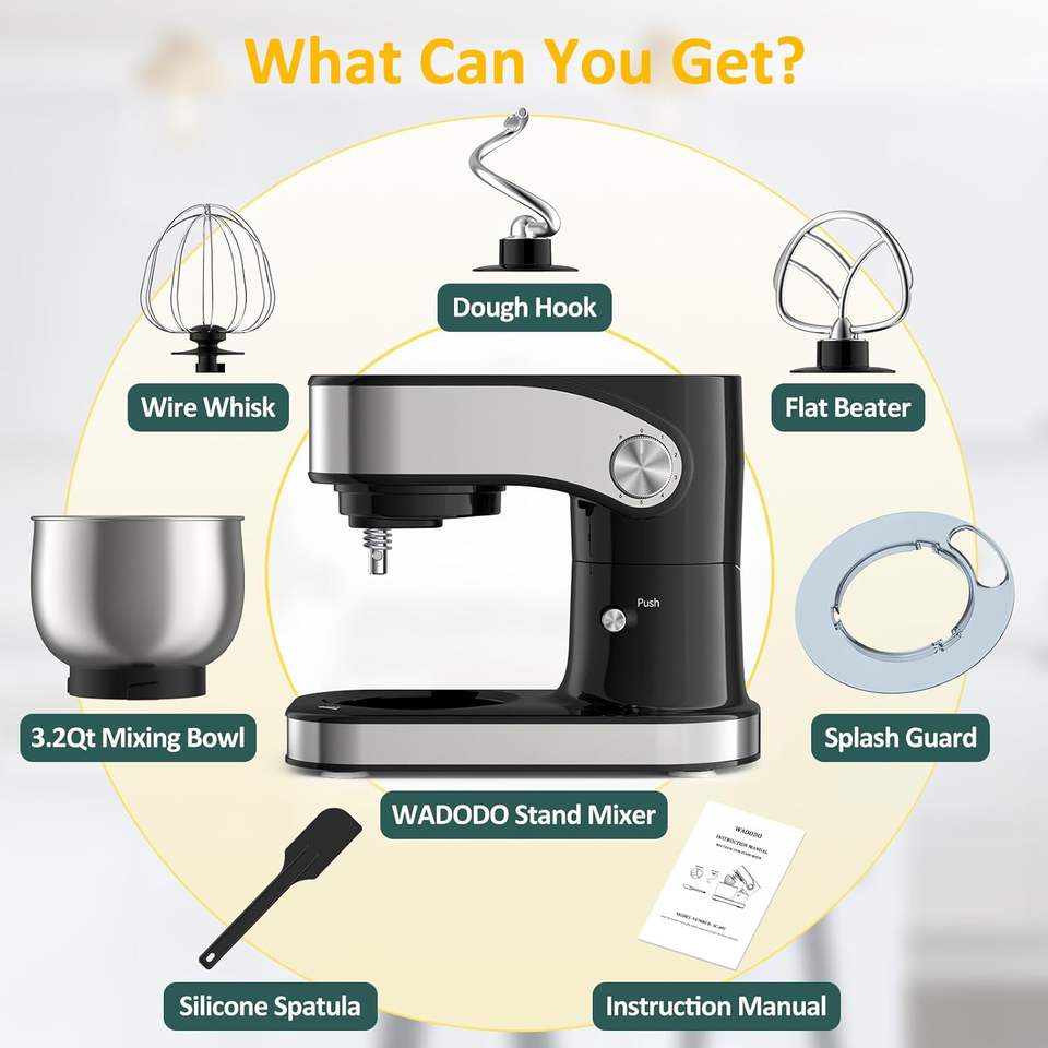 Accessories:Dough Hook, Flat Beater, mixing bowl, Wire Whip