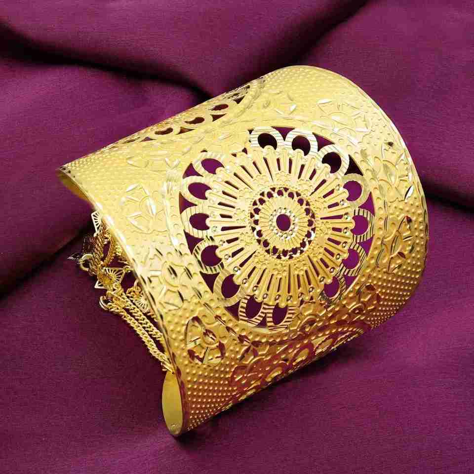Wholesale 14K 18K 24K Dye Gold Plated Intricate Filigree Or Cut-Out Floral Pattern Cuff Kada, Fashion Kada, Adjustable Cuff Kada