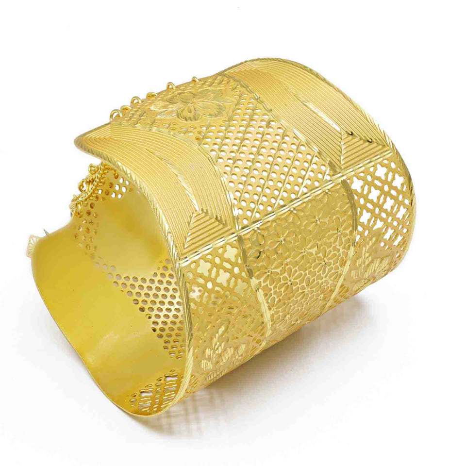 Wholesale 14K 18K 24K Dye Gold Plated Women's Flower Design Wide Filigree Lattice Cuff Bracelet Fashion Brass Cuff Bracelets