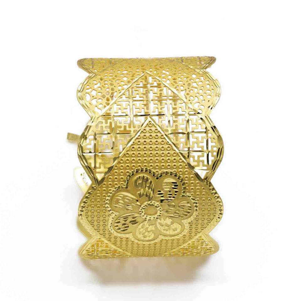 Wholesale 14K 18K 24K Dye Gold Plated Brass Cuff Kada Bracelet Wide Filigree Cuff Bracelet Chain Clasp Fashion Cuff Kada Bangles