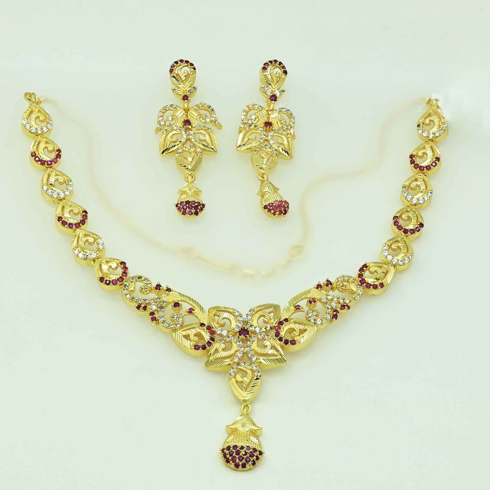 14K 18K 24K Micro Gold Plated Forming AD & Ruby Stone Necklaces