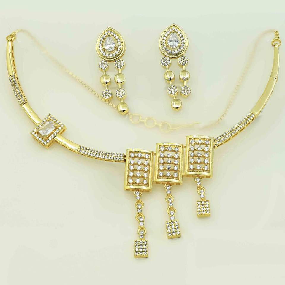 14K 18K 24K Micro Gold Plated Forming AD Stone Necklaces SetNecklaces Type