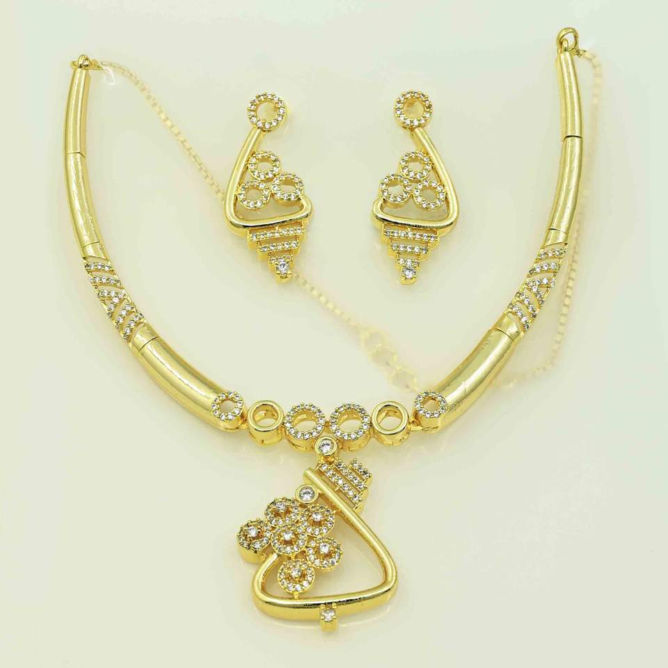 14K 18K 24K Micro Gold Plated Forming AD Stone Necklaces SetNecklaces Type