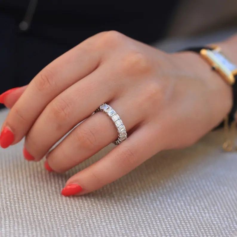 Wholesale 14K Gold EF Lab Grown Diamond Wedding Band IGI Certified Stunning Emerald CVD Ring Half Eternity Band Women Jewelry