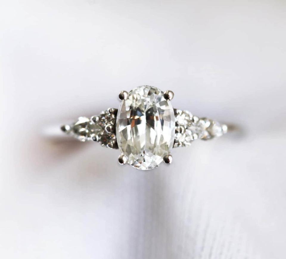 Wholesale 14K Gold Vintage Oval Cut White Sapphire Ring Natural Diamond Fine Jewelry Fashion Rings Trendy Classic Design Wedding