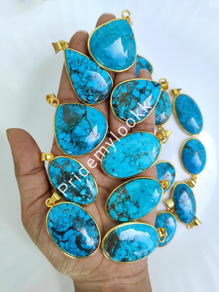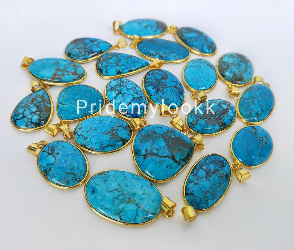 Wholesale 14K Gold Plated Necklace Fashion Jewelry for Women Children Featuring Natural Magnesite Turquoise Bezel Pendant Mixed