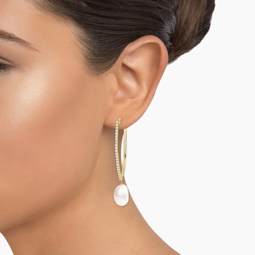 Wholesale 14K Yellow Gold Stunning Long Drop Pearl Diamond Earrings Luxury Statement Bridal Jewelry Global Retail